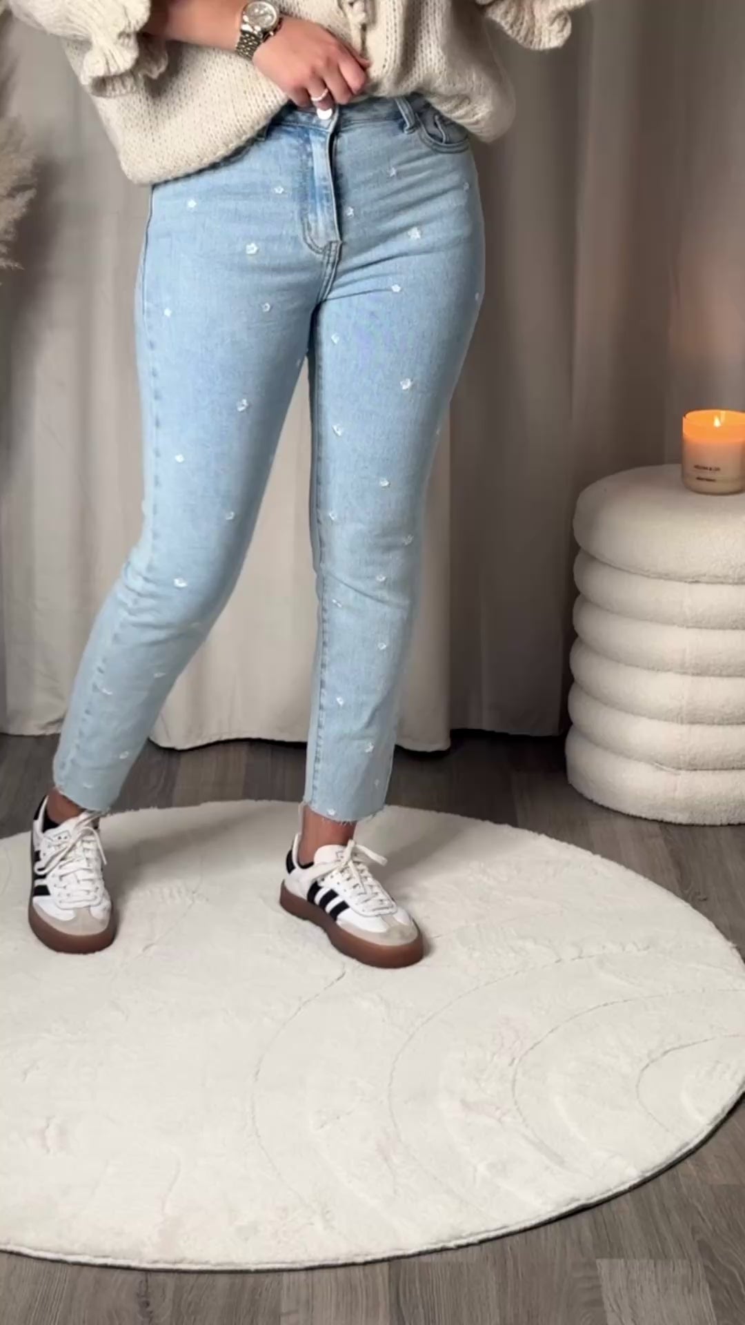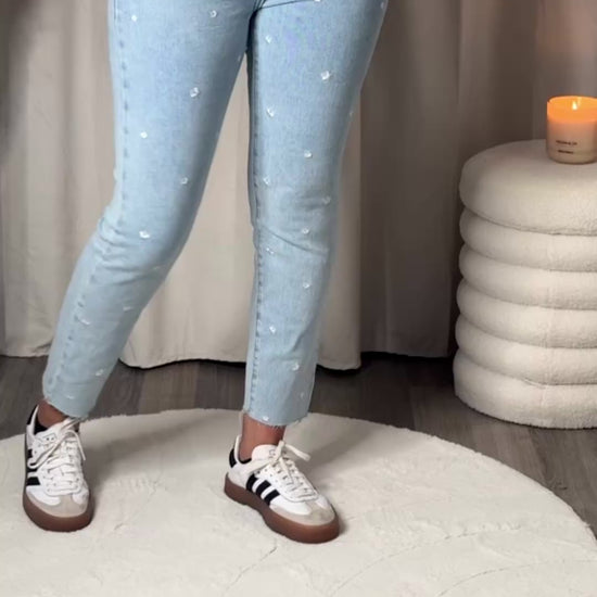 Mom fit fleurs - bleu clair